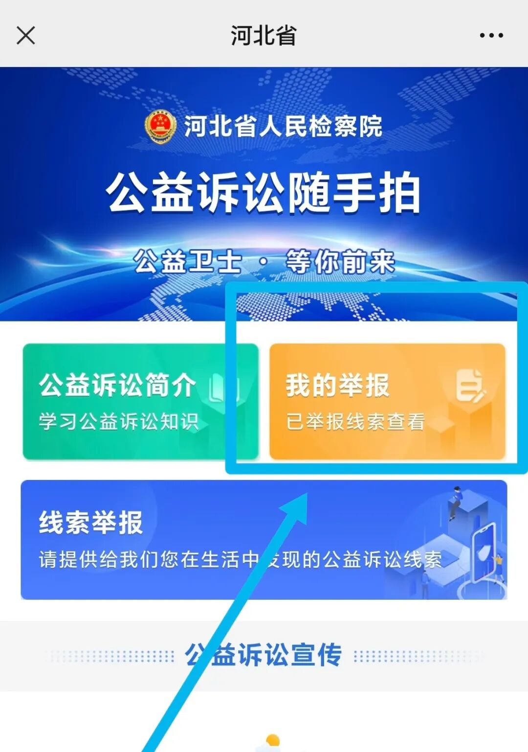 4.在【我的举报】功能中,您可查看自己提供的公益诉讼线索情况。