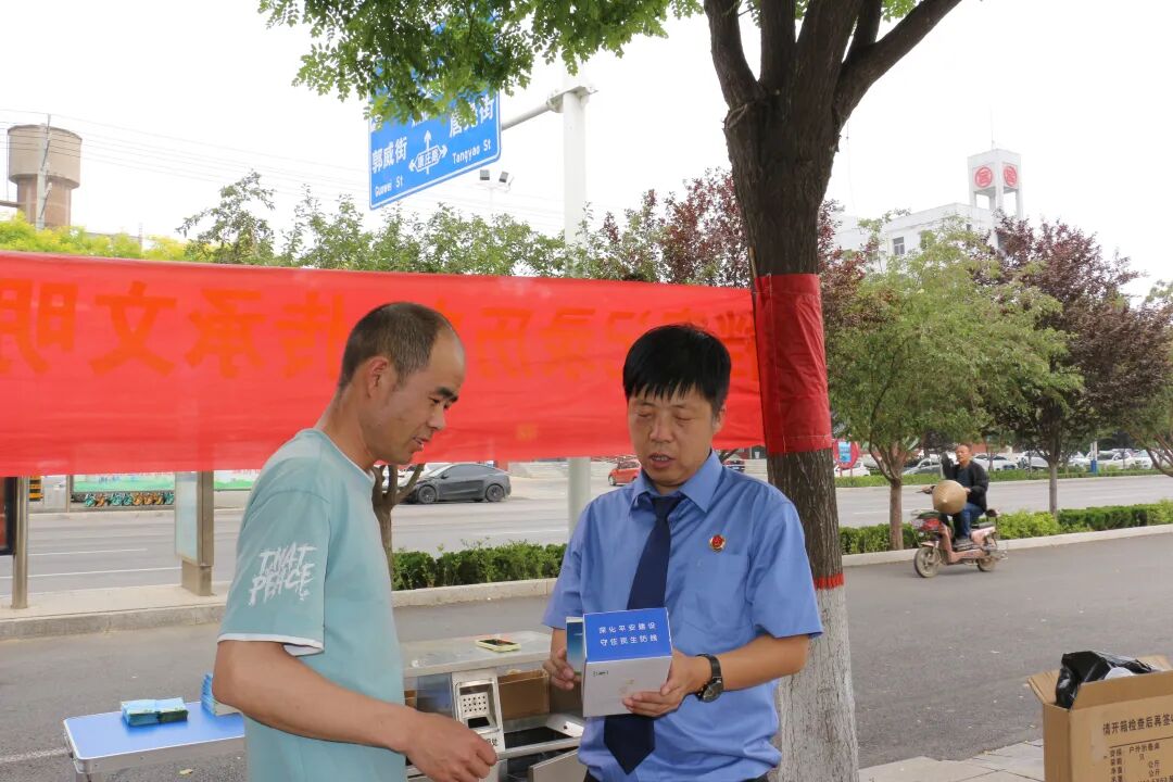 活动中,该院干警来到县城繁华地段,通过发放宣传资料、现场咨询讲解等方式,积极为群众讲解档案法相关知识,让百姓了解档案工作、知晓档案法律法规,进一步扩大档案法治宣传的受众率,使档案工作更加贴近社会、贴近实际、贴近群众。