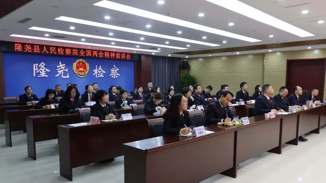 李建卫代表的精彩宣讲,让干警们对两会精神有了更深层次的解读,对两会精神在检察工作中的落实有了清晰的思路。大家纷纷表示,将以此学习为契机,认真贯彻落实好全国两会精神,忠诚履职、担当作为。一是要学深悟透,推动学习贯彻两会精神走深走实。全体干警要把学习两会精神作为当前和今后一段时间的重要政治任务,坚持原原本本学、联系实际学、融会贯通学,真正做到学深悟透、入脑入心,让两会精神在检察工作中落地生根,努力把两会精神转化为推动检察工作发展的强大动力。二是要服务大局,在护航高质量发展上展现担当。紧紧围绕建设“产业强县、美丽隆尧”目标,立足检察职能,找准为大局服务的切入点和着力点,主动融入全县经济社会发展大局。要依法严厉打击各类违法犯罪,促进犯罪预防和治理;要常态化开展扫黑除恶斗争,坚持打早打小,打准打实;要积极开展规范涉企执法专项行动,加强知识产权保护,持续优化法治化营商环境。三是要司法为民,在增进民生福祉上精准发力。认真做好老年人、残疾人、妇女、农民工等特殊群体权益司法保护,维护弱势群体合法权益;要扎实开展好“燕赵山海·公益检察”专项监督,切实解决一批人民群众关心关注的食品药品安全和生态环境问题;要积极践行和发展新时代枫桥经验,防范化解矛盾隐患,不断推进信访法治化。四是要强化监督,在提升监督质效上攻坚突破。坚持“高质效办好每一个案件”,将“三个善于”融入检察办案全过程各环节,推动“四大检察”全面协调充分发展。要依法监督、规范监督,勇于自我监督,确保自身严格依法办案、公正司法。要全面加强对立案、侦查、审判、执行活动的法律监督,依法加大对执法不严、司法不公突出问题监督纠正力度,切实提高监督质效,努力开创隆尧检察工作新局面。