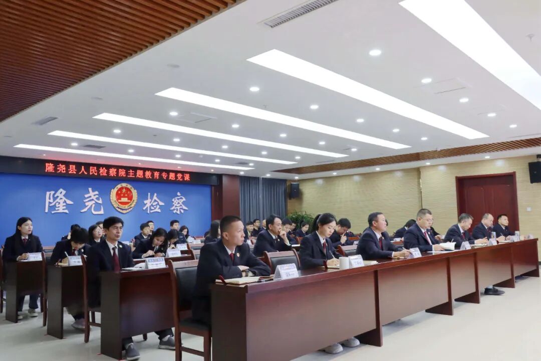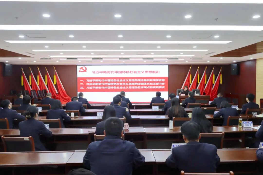 为深入学习贯彻习近平新时代中国特色社会主义思想,落实党中央关于主题教育的要求,丰富主题教育的学习方式,引导广大党员干部在学深悟透中领会精神实质,凝聚思想共识,推动主题教育走深走实。10月20日上午,隆尧县人民检察院特邀中共隆尧县委党校的骨干讲师韩梅老师为全体干警讲授主题党课,院党组书记、检察长李君剑主持会议。会上,韩梅老师以《习近平新时代中国特色社会主义思想概论》为题目,围绕习近平新时代中国特色社会主义思想的理论基础和现实依据、逻辑体系和主要内容、哲学观点和实践要求三个方面的内容进行详细地解读。韩梅老师的授课内涵丰富、逻辑清晰、生动形象,具有非常强的理论意义和现实意义。 李君剑强调,全体干警要用心领会本次党课的内容,加强对习近平新时代中国特色社会主义的整体学习,坚持读原著、学原文、悟原理,自觉用新思想新理念新要求武装头脑。要以此次主题教育为契机从中汲取奋发进取的智慧和力量,熟练掌握其中蕴含的思想方法、工作方法,并结合自身工作实际,将学习成果转化为促进检察工作高质量发展的动力。